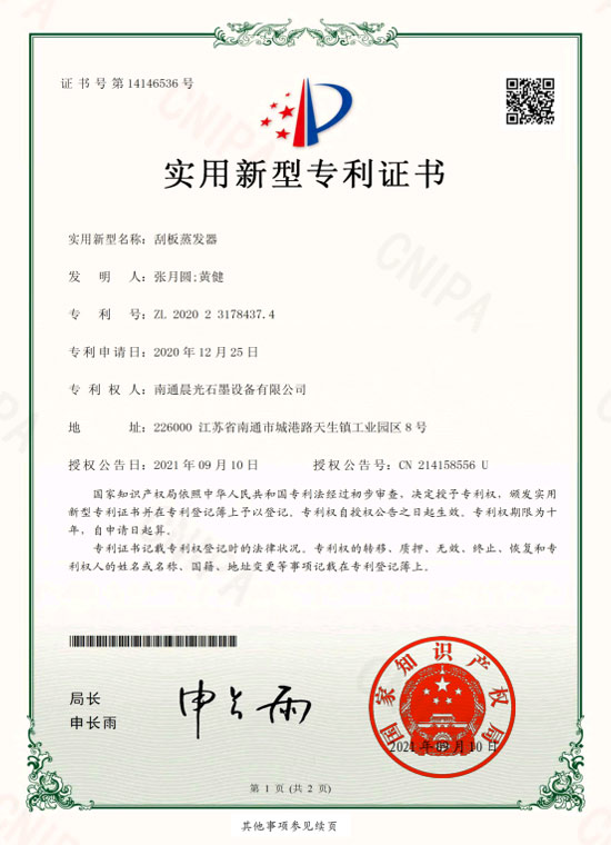 實用新型專利 :刮板蒸發(fā)器 專利號:ZL 2020 2 3178437.4